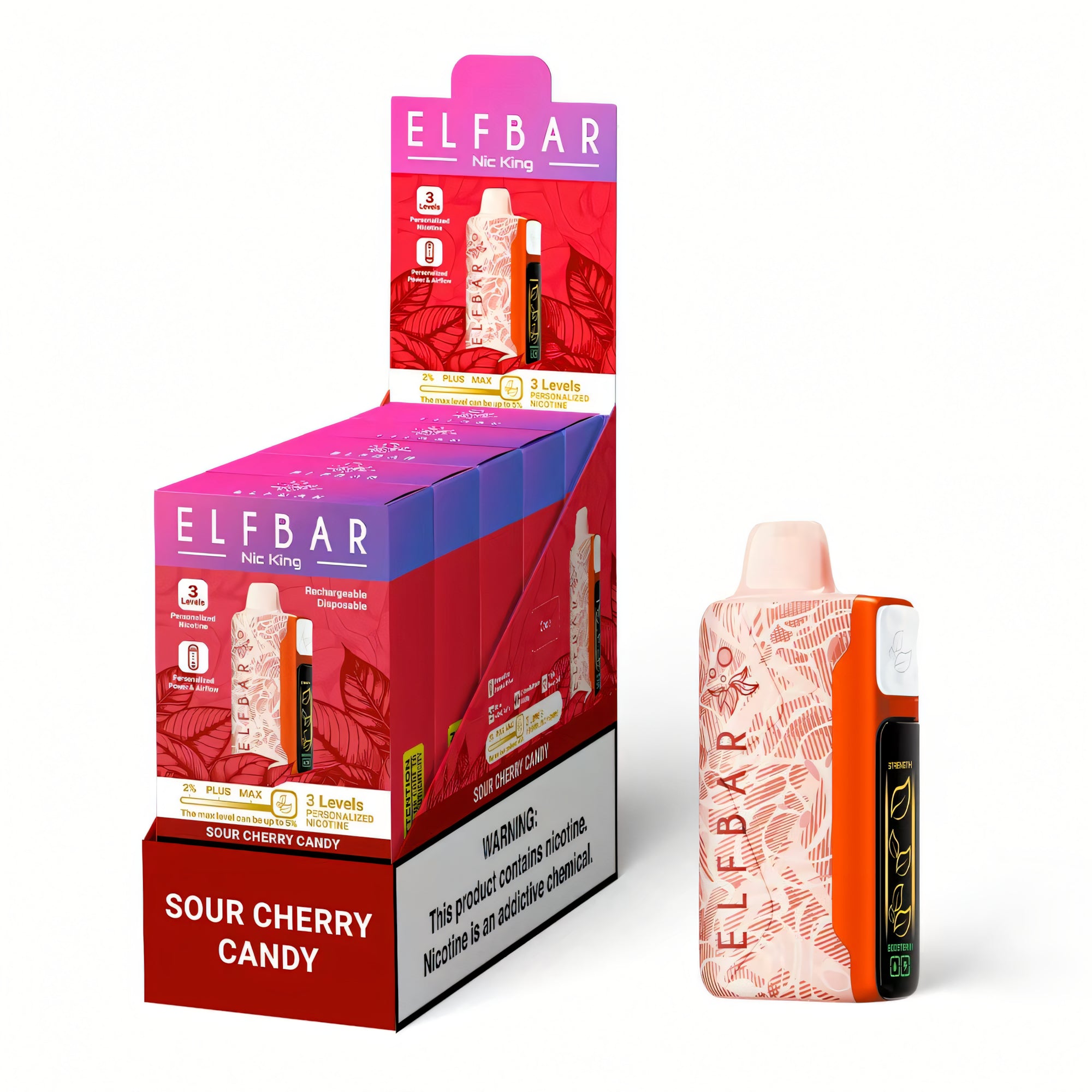 Az Elf Bar Nicotine King 40000 3 választható nikotinszintet (2%, 3%, 5%) és egy hosszú élettartamú, 850 mAh-s akkumulátort biztosít Neked. Élvezd a Sour Cherry Candy ízt!